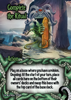“Here” refers to the base that the card currently occupies, or to the base itself if a base says “here”. “Move a card here” means “move a card to here” unless another destination is specified.