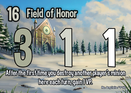 Breakpoint 16 - VPs: 3 1 1 - After the first time you destroy another player's minion here each turn, gain 1 VP.