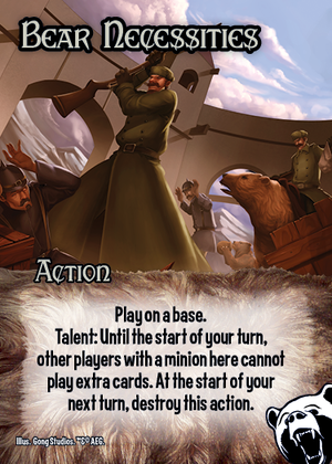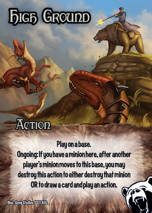 Play on a base. Talent: If you have the most power here, either draw a card OR your minions here cannot be affected by other players' cards until the start of your next turn.