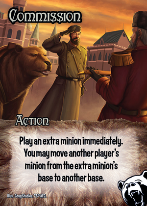 Play an extra minion immediately. You may move another player’s minion from the extra minion’s base to another base.
