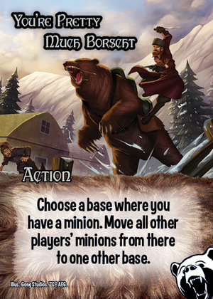 Choose a base where you have a minion. Move all other players’ minions from there to one other base.