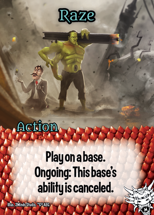 Play on a base. Ongoing: This base’s ability is cancelled.