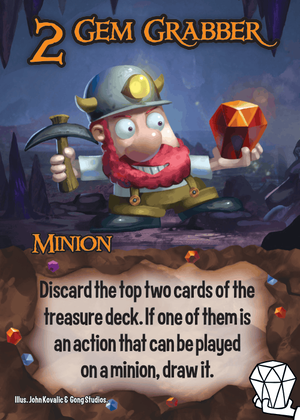 Power 2 - Discard the top two cards of the treasure deck. If one of them is an action that can be played on a minion, draw it.