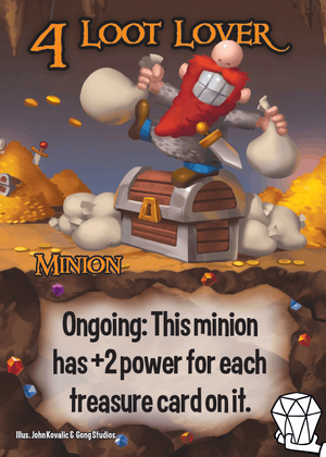 Power 4 - Ongoing: This minion has +2 power for each treasure card on it.