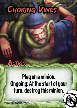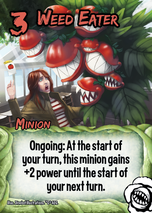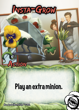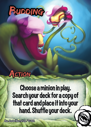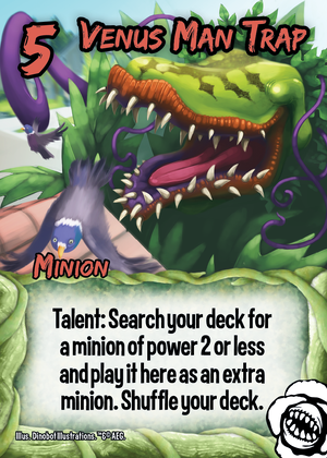 Killer Plants take a steady and rooted approach to the game. Most of their abilities are delayed and/or multi-turn, having the least impact the turn they are played. Killer Plants root through your deck drawing and searching for new minions, overwhelming bases with more and more power if left unchecked. Their actions generally either play extra minions or help maintain presence on the bases.