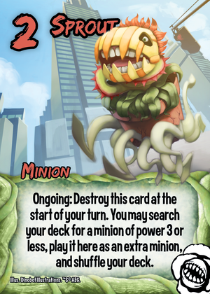 Power 2 - Ongoing: Destroy this card at the start of your turn. You may search your deck for a minion of power 3 or less, play it here as an extra minion, and shuffle your deck.