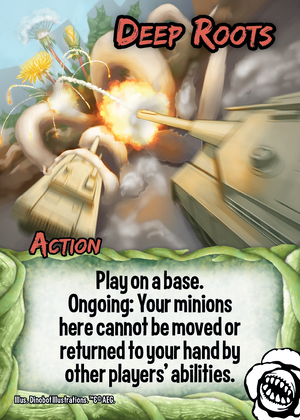 - This does not prevent minions from being placed, shuffled or destroyed. Deep Roots does not prevent movement caused by bases (e.g., Mushroom Kingdom) or your own abilities.