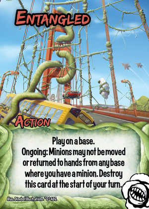 Play on a base. Ongoing: Minions may not be moved or returned to hands from any base where you have a minion. Destroy this card at the start of your turn.