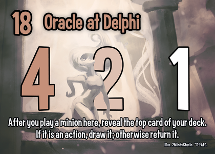 Breakpoint 18 - VPs: 4 2 1 - After you play a minion here, reveal the top card of your deck. If it is an action, draw it; otherwise return it.