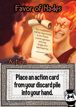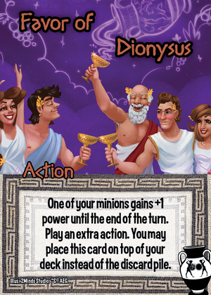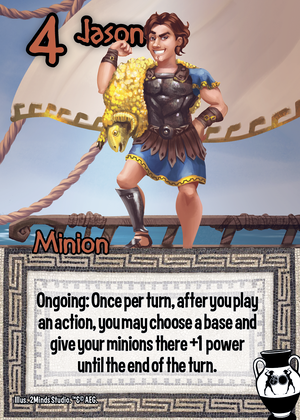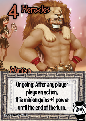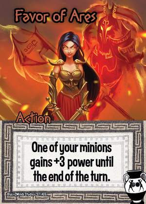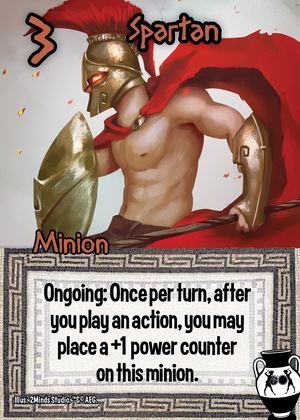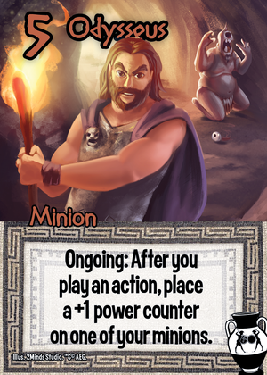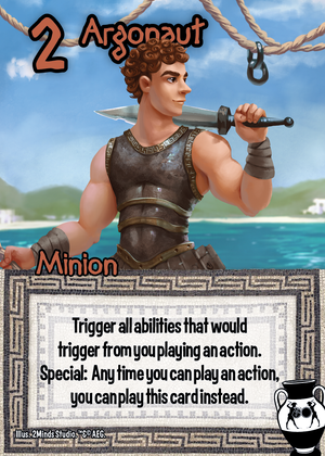 Mythic Greeks specialize in getting stronger by using powerful actions, known as the "favors of the Gods" which grant them many diverse abilities. The minions Spartan, Jason, Heracles and Odysseus get buffed as more actions are played. Argonaut is counted as both an action and a minion so if a minion or action is played, the Argonaut can be played as the other. The Mythic Greeks minions are fairly weak and don't have any diversity so they have to depend on their actions instead.