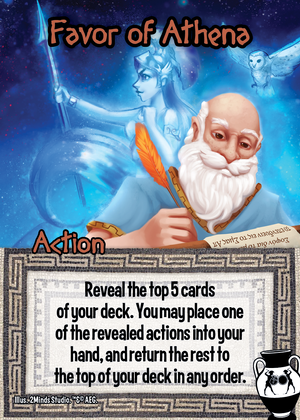 Reveal the top 5 cards of your deck. You may place one of the revealed actions into your hand, and return the rest to the top of your deck in any order.