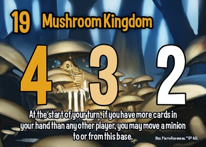 Breakpoint 19 - VPs: 4 3 2 - At the start of your turn, if you have more cards in your hand than any other player, you may move a minion to or from this base.
